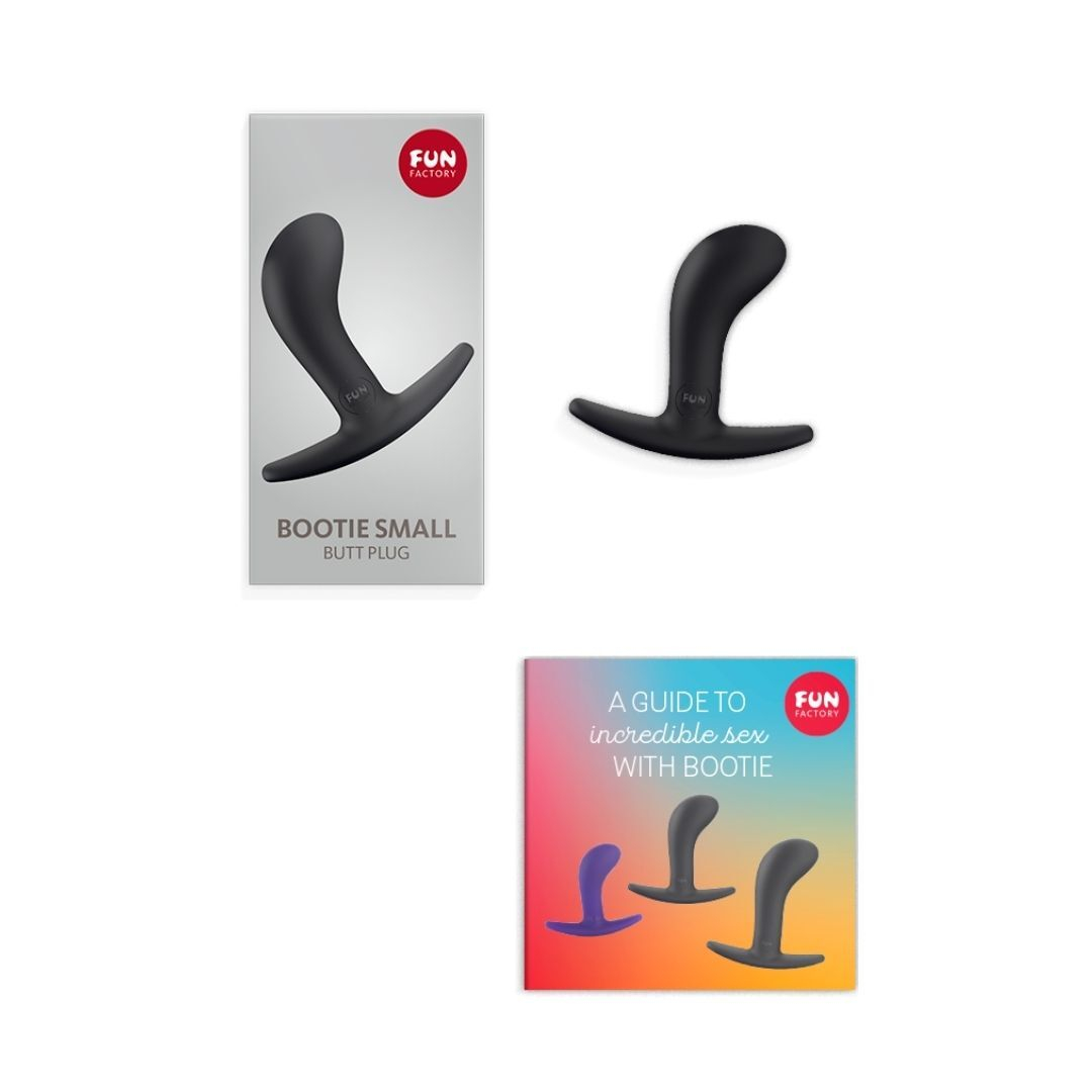 Анальна пробка Fun Factory BOOTIE виготовлена з високоякісного медичного силікону з гладенькою поверхнею. Загнутий кінчик із круглим потовщенням під час введення створює відчуття приємної наповненості: він дістає до всіх таємних чутливих точок. Чоловікам така форма сподобається тим, що головка чудово стимулює простату. А жінкам носіння BOOTIE під час статевого акту допоможе зробити стимуляцію точки G більш яскравою: іграшка «посуває» її ближче до пеніса або дилдо, тому ви отримуєте додаткову стимуляцію з кожною фрикцією. Вузька гнучка основа з тонким дугоподібним обмежувачем щільно й легко поміщається між сідницями, даючи можливість міняти пози з комфортом.