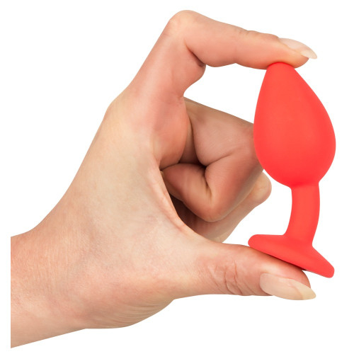 Невелика анальна пробка червоного кольору гладкої форми, виконана з високоякісного силікону з бархатистою поверхнею. Має закруглений кінчик для безболісного та комфортного використання. Обмежувальна основа прикрашена кристалом, який перетворює іграшку на ювелірну прикрасу. Рекомендується використовувати з лубрикантом на силіконовій (водній) основі.