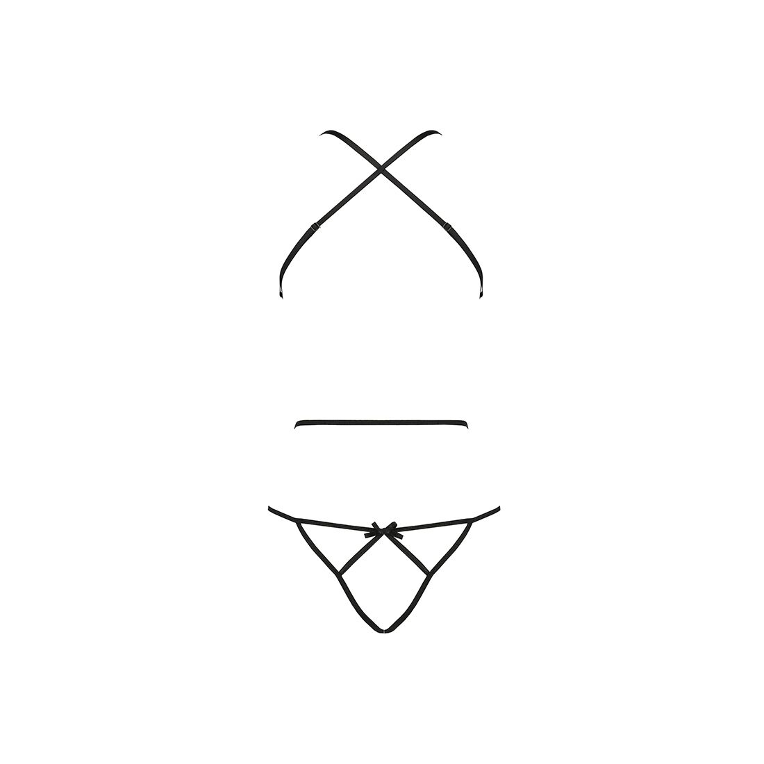 Чувственное боди отличается роскошным сочетанием материалов: кружево плюс имитирующая кожу ткань выглядят смело и стильно. Красивый рисунок из стреп сзади соблазнительно подчеркивает ягодицы и талию. Это нижнее белье из материалов высочайшего качества оправдает ожидания даже самых требовательных женщин!