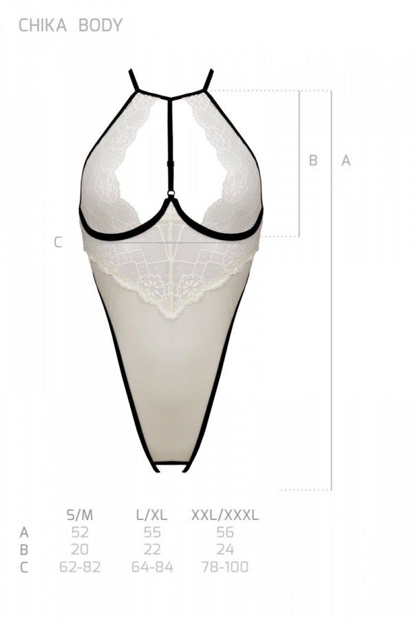 Рекомендуємо купити боді з доступом Passion CHIKA BODY — пікантне та неймовірно витончене. М’яке мереживо, еластичний тонкий матеріал, ефектне поєднання кольору екрю з чорними деталями: це чудове боді стане родзинкою вашого побачення. Відкриті груди та промежина роблять боді незвичайним.