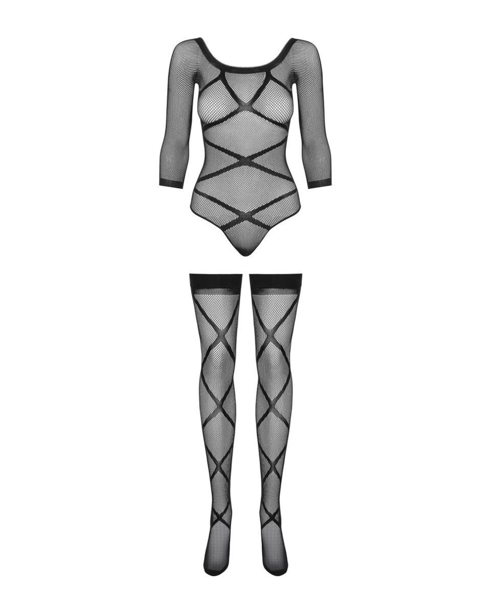 Еротична білизна не просто створює потрібний настрій для незабутнього вечора вдвох, а й допомагає реалізувати найнеймовірніші фантазії. Купуйте бодістокінг Obsessive Bodystocking G320це безпрограшний спосіб стати чарівною. Комплект із двох окремих частин — напівпрозорого боді з довгими рукавами та панчохи. Усі деталі комплекту виконані з еластичної напівпрозорої сітки з малюнком у вигляді ліній, що перетинаються. Незвичайний декор, атласне контрастне оздоблення коміра боді та верху панчіх, не тільки оригінально, а і вражально сексуально.