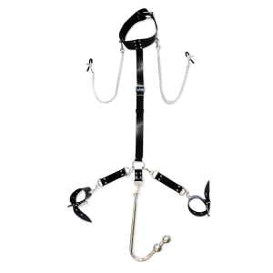 Цей девайс — для гарячих БДСМ-практик для тих, хто не знає меж в отриманні задоволення. Поєднання натуральної шкіри й міцного, гладенького металу — неймовірний фетиш, який сколихне вашу підсвідомість і проявить найтемніші сексуальні бажання. Шкіряний нашийник з наручниками, металевий анальний гак та затискачі для сосків — це не просто звичайна гра з елементами домінування та підкорення. Це девайс, який змусить вашого партнера/партнерку забути про все й лише відчувати біль та задоволення кожною клітиною тіла.