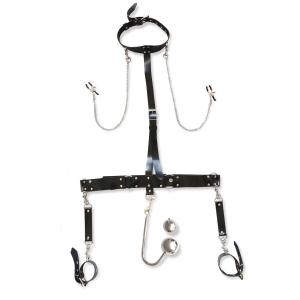 Це оригінальний девайс для тих, хто практикує БДСМ. Бондажний набір Bridget — з використанням міцного металу та натуральної шкіри. Завдяки шкіряному поясу та анальному гаку ви з легкістю зможете практикувати підвішування з використанням мотузок для шибарі, а нашийник, наручники та затискачі для сосків у рази збільшать яскраві відчуття від стимуляції. Це справді унікальний девайс, який поєднує в собі атрибутику одразу з кількох видів БДСМ-практик. Спробувати незвичайне поєднання відчуттів і залишитися в захваті від насиченої та глибокої стимуляції ерогенних зон — те, що чекає на вас після використання цього девайсу.