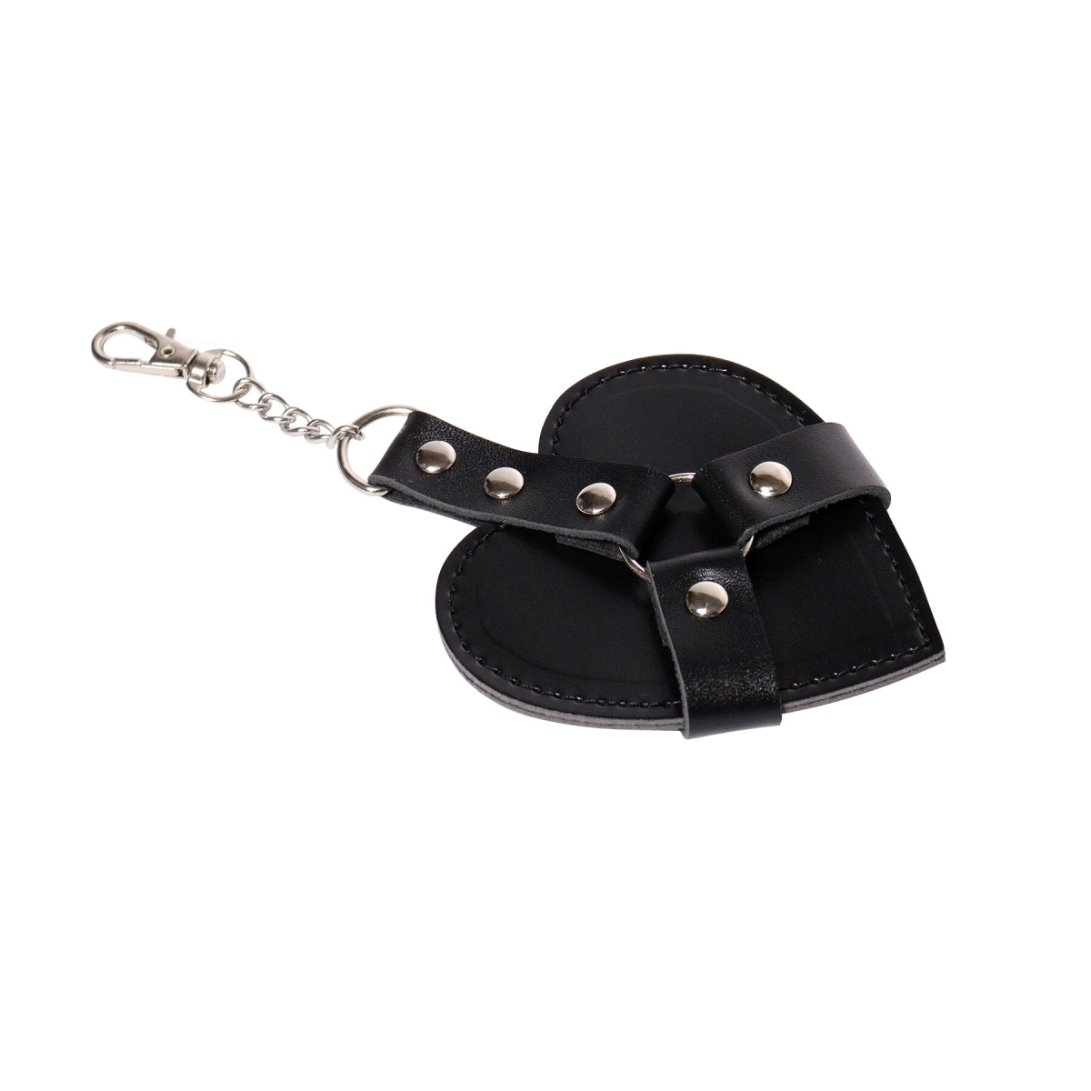 Цей брелок може стати цікавим доповненням вашого образу і яскравим аксесуаром для любителів оригінального дизайну. Виконаний у формі серця, він прикрашений мініатюрними портупеями, які надають виробу зухвалий вигляд.