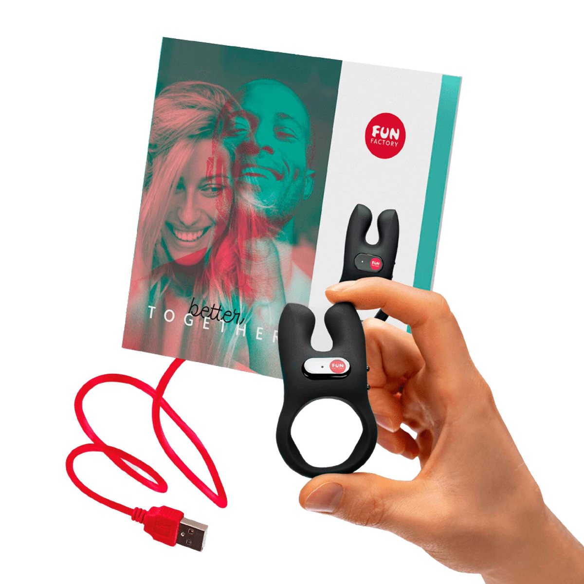 Ерекційне віброкільце з подвійною стимуляцією клітора Fun Factory N?S black, 2 мотори - фото