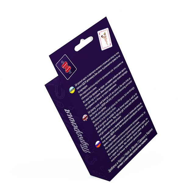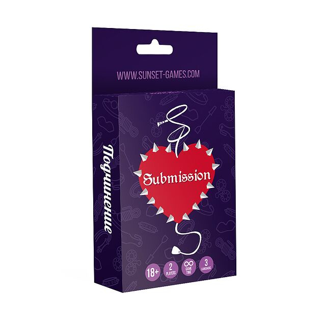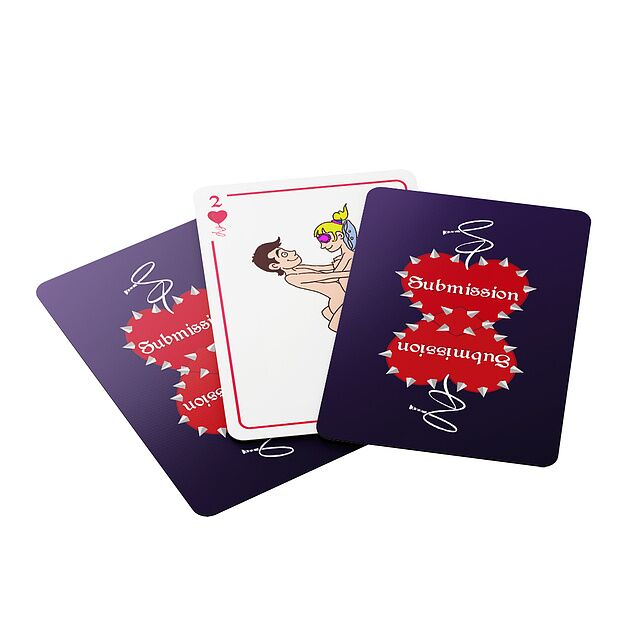 «Підкорення» – це колода, що складається з 54 гральних карт, на яких представлені дії, пози та предмети для розваг у легкому БДСМ.