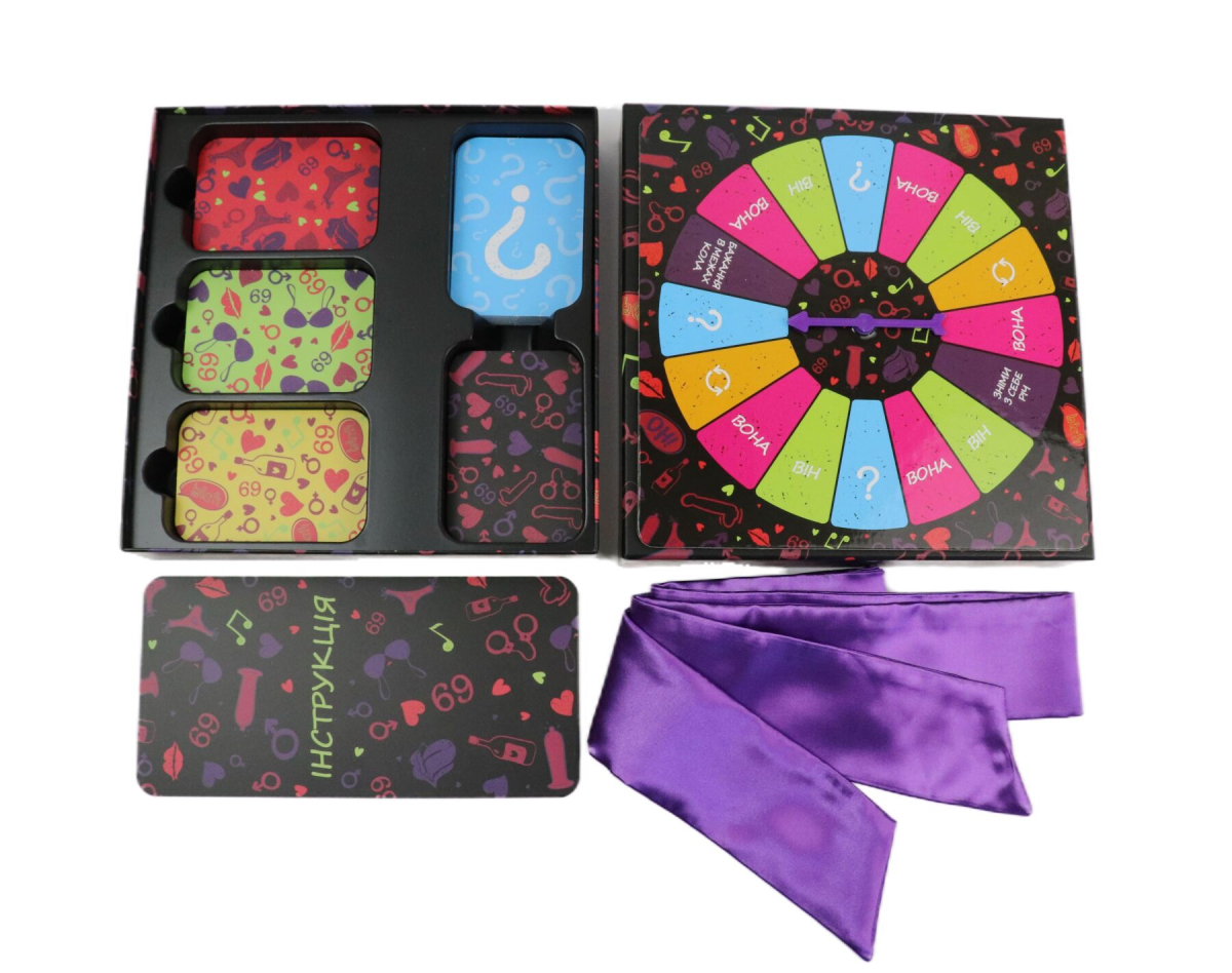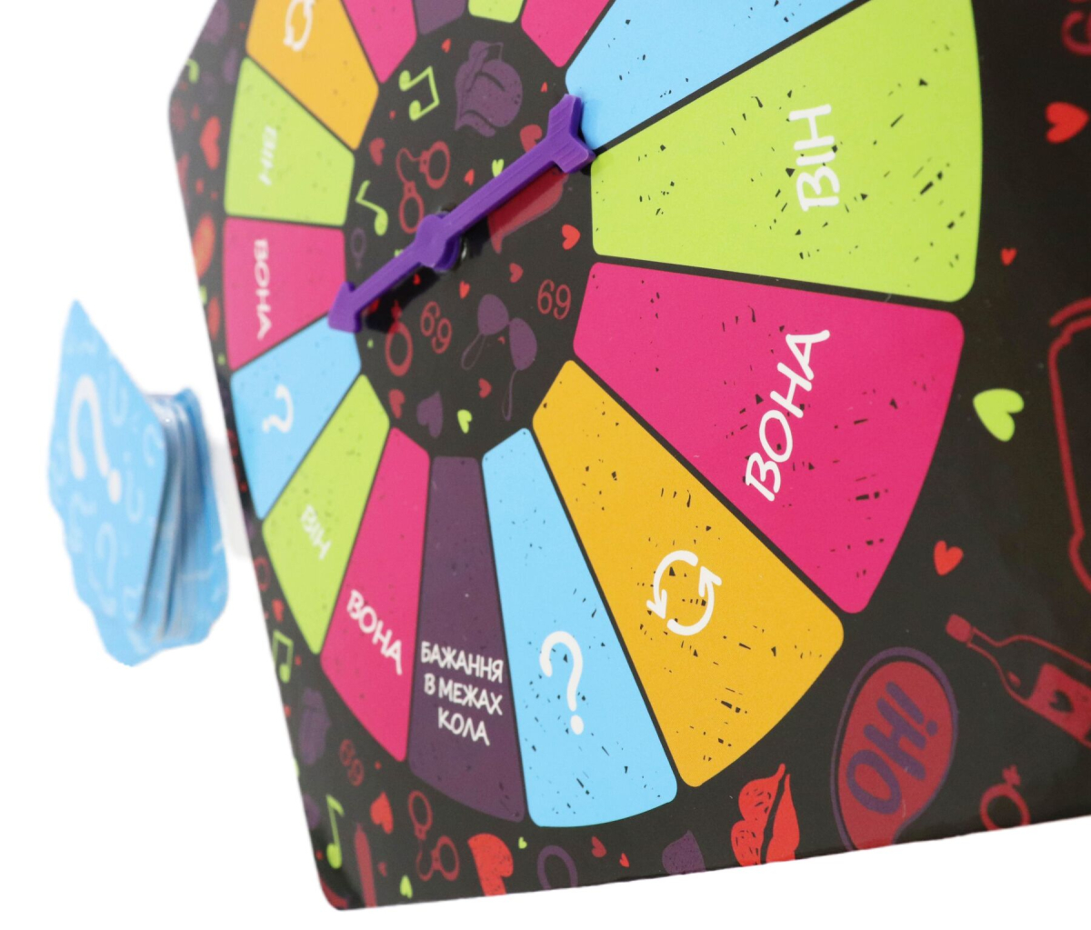 - Механіка гри дуже проста: крутите стрілку, тягнете картку і виконуєте завдання.