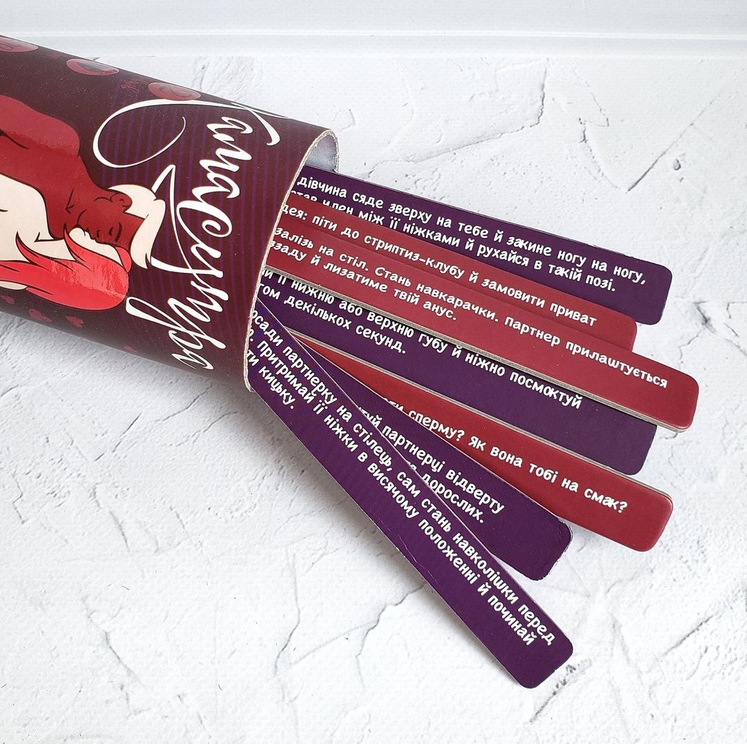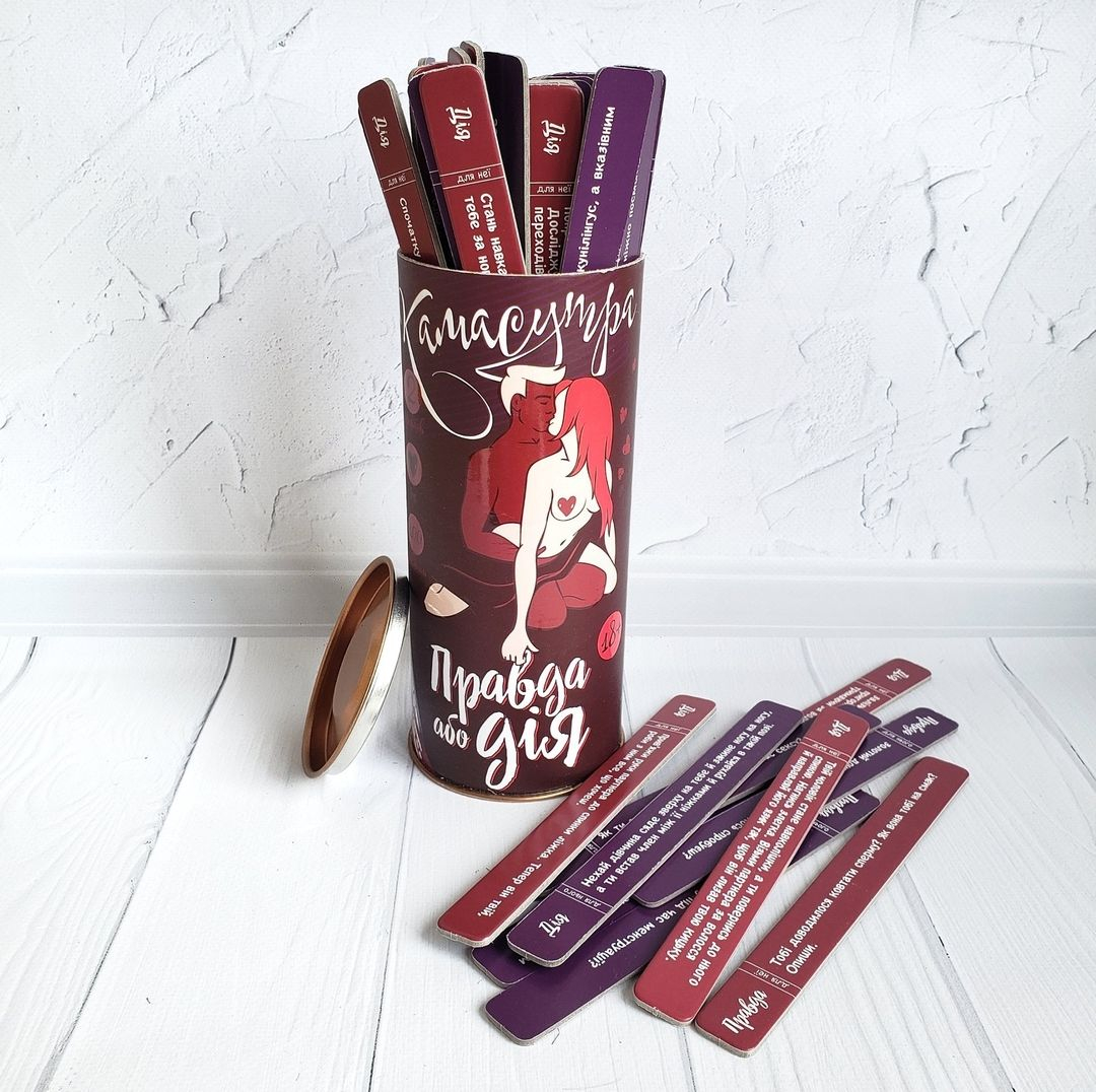 Стисло про правила: Все дуже просто: ви по черзі тягнете стіки. Бордовий бік — завдання для неї, фіолетовий — завдання для нього. Якщо на стіку написано «Правда» - відповідаєте на запитання, якщо «Дія» - приступаєте до виконання завдання. Ми намагалися зробити так, щоб обом партнерам дісталася однакова кількість уваги. Ви маєте право відмовитися від будь-якого завдання, адже це лише гра. Однак пам'ятайте: можливо, ви не матимете іншого шансу спробувати те, чого вам так давно хотілось.