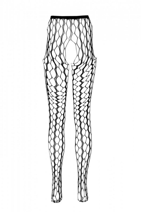 Поздовжні комірки-ромби утворюють вертикальний геометричний малюнок на ніжках, візуально подовжуючи їх. Еластична резинка-пояс не передавлює тіло, що дає змогу одягати колготки під обтислу сукню або спідницю. Відкриті з боків стегна додатково привертають увагу.