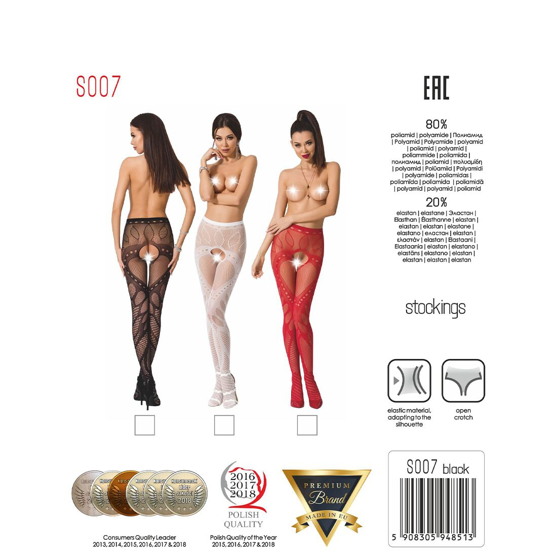 Еротичні колготки-бодістокінг Passion S007 black завдяки високій посадці візуально подовжують ніжки та роблять фігуру стрункішою, а прикраси у вигляді симетричного флористичного малюнка, ніби обвивають ніжки. Еластична резинка-пояс не передавлює тіло, що дає змогу одягати колготки під обтислу сукню або спідницю. Відвертий дизайн відкриє доступ до найінтимніших місць і стане пустотливим провісником пікантних ігор.