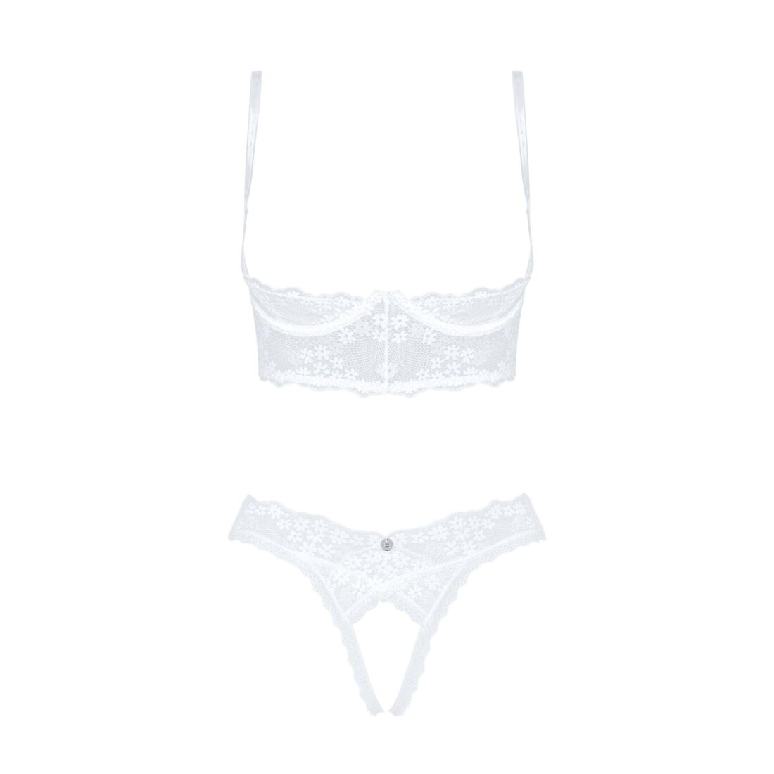 Еротичний комплект Obsessive Heavenlly 2-pcs cupless set складається з бюстгальтера і трусиків танга. Набір упакований у симпатичну коробочку, тому може стати чудовим подарунком на будь-яке свято або й без нагоди.
