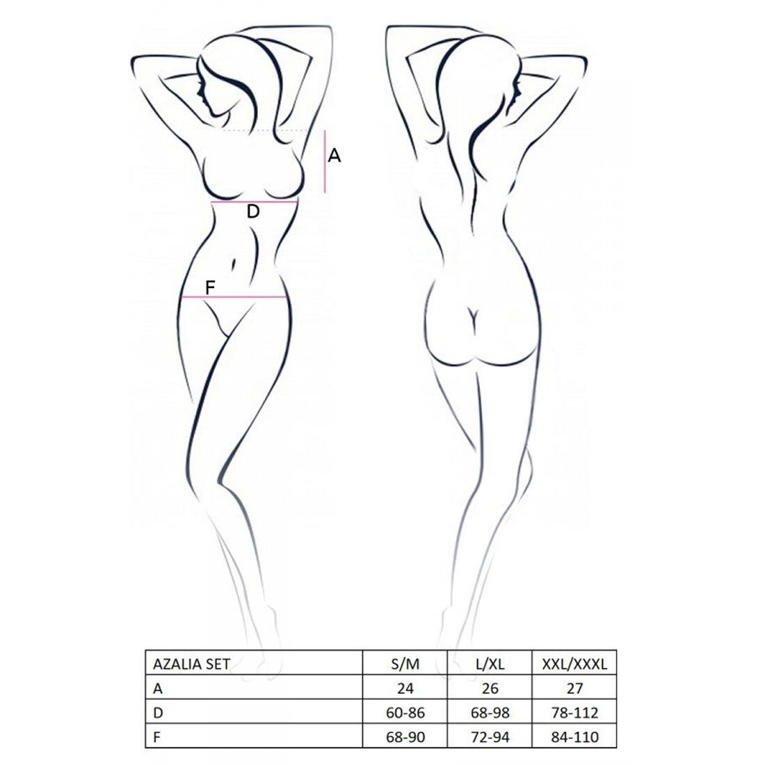 Пропонуємо купити еротичний комплект AZALIA SET black - чуттєвий і ніжний, він прекрасно підійде як для особливих моментів, так і для повсякденного використання, так як і трусики, і бюстгальтер дуже комфортні. Виготовлені з ніжного мережива і прикрашені хвилюючою шнурівкою.