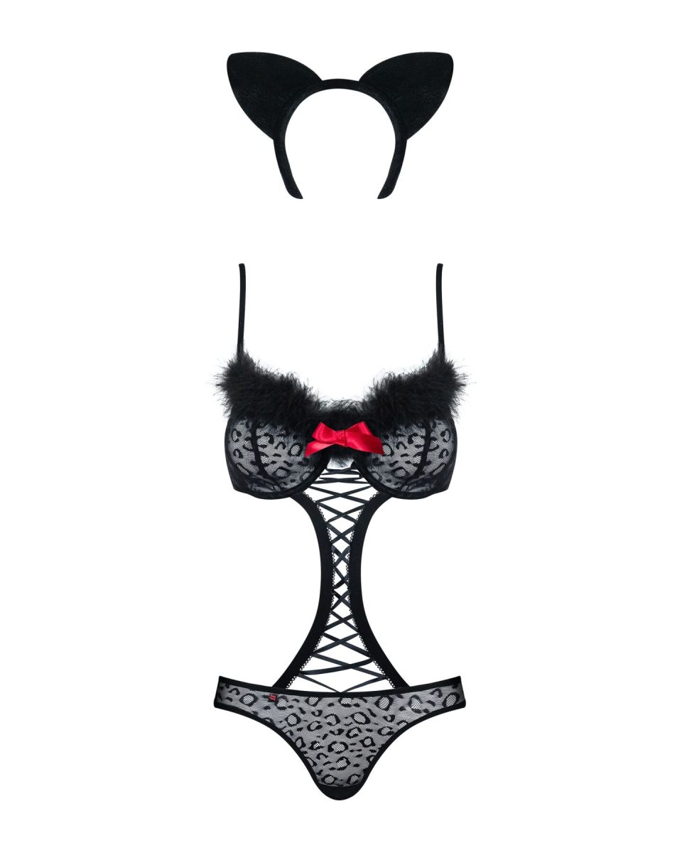 Еротичний костюм гепарду Obsessive Gepardina 3 pcs costume складається з монокіні на кісточках, знімного хвоста та вушок.