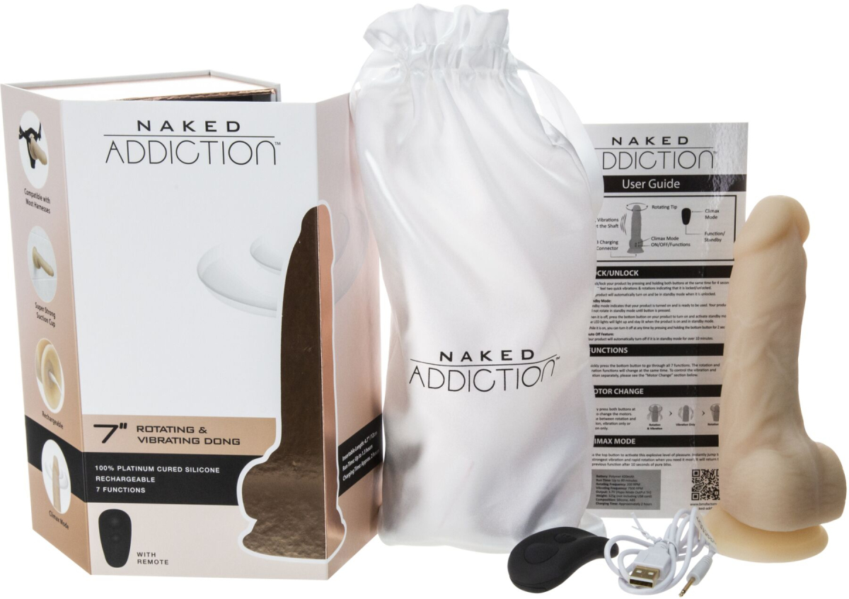Чудова багатофункціональна іграшка для глибокого задоволення вашої пристрасті! Пропонуємо купити фалоімітатор з вібрацією та ротацією Naked ADDICTION James 7″: він не тільки потужно вібрує й обертається на 360° в 7 режимах (обидва мотори можуть працювати й синхронно, й автономно), але ще й надійно кріпиться до будь-якої гладенької поверхні та підходить до більшості ременів для страпона. Реалістична текстура, приємний та зносостійкий силікон преміальної якості, автономне керування вібрацією та ротацією — у ньому є все, щоб полетіти до країни еротичних фантазій. Додатковий бонус — пульт дистанційного керування в комплекті забезпечує комфортне перемикання режимів прямо в процесі!