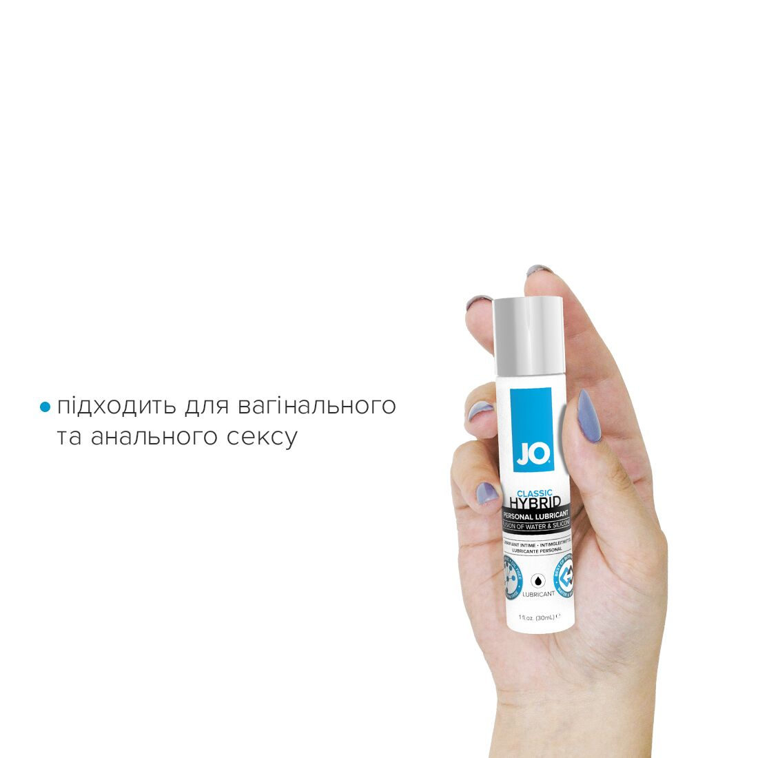 Змазка на комбінованій основі JO CLASSIC HYBRID — це інтимний лубрикант на комбінованій основі, що використовується як доповнення до природної змазки для отримання більшого задоволення від інтимної близькості. Цей засіб без парабенів та гліцерину є свого роду «робочим коником» колекції JO®. Гібридна формула на основі води та силікону забезпечує традиційну тривалість дії та легкість змивання. Ідеальний для тих, хто віддає перевагу засобам із густою гелеподібною консистенцією, які, танучи, перетворюються на легку гладеньку змазку!