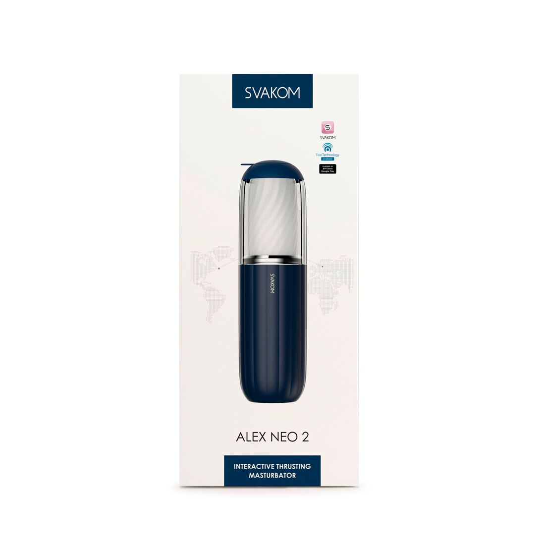 Крім того, інтерактивним мастурбатором Svakom Alex Neo 2 можна керувати через смартфон. Для цього необхідно встановити застосунок Svakom та/або Feel Connect (є і для iOs, і для Android). Під час роботи через застосунок Svakom ви зможете керувати іграшкою, передавати керування партнеру, змусити її вібрувати в ритмі музики або відеоролика. Програма Feel Connect дає змогу працювати з вебкамерою, передавати керування своїм глядачам, вести текстовий та відеочат, робити свої перформанси максимально інтерактивними.