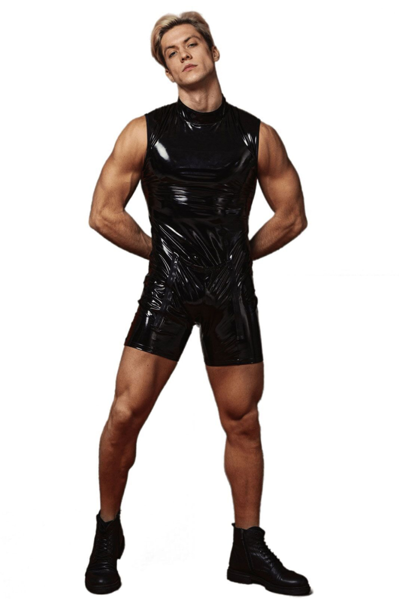 Комбідрес чоловічий лакований «Розпусний Джо«D&A — ідеальне рішення для тематичної вечірки, сюрпризу для другої половинки або просто вечора гарячого сексу! Дуже приємний на дотик гладенький блискучий матеріал повторює всі вигини сильного чоловічого тіла, наглухо закриваючи його спереду. Зі спини комбідрес відкриває неймовірно апетитний вид на чоловічі сідниці, надаючи доступ для пестощів або ляпанців. Завдяки продуманому дизайну ви можете займатися сексом, не знімаючи костюма. Дві зручні блискавки в зоні паху дають можливість в одну секунду звільнити член та яєчка для пестощів. Ваш боєць вільний, а руки партнера все ще блукають по лакованому збуджувальному одягу.