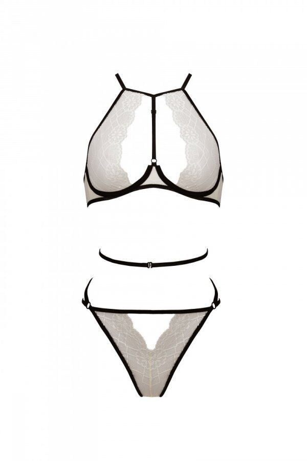 Ця приголомшлива білизна стане вашою улюбленою! Рекомендуємо купити комплект білизни Passion CHIKA SET — ніжної, як дотик коханого. Приголомшливий колір екрю з контрастними чорними стрепами, широке мереживо й м’яка тонка тканина ідеально лягають на вигини тіла. Мереживні півчашки топа на кісточках шикарно окреслюють груди, залишаючи на очах апетитні частини й лише злегка ховаючи соски.