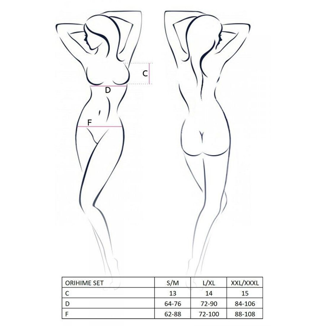 Чи може еротична білизна бути ще і комфортною? Безумовно! Щоб переконатися у цьому, досить купити комплект ORIHIME SET white L/XL - Passion зручного крою, з розкішним мереживом і хвилюючим контрастом пристрасного чорного і невинного білого.