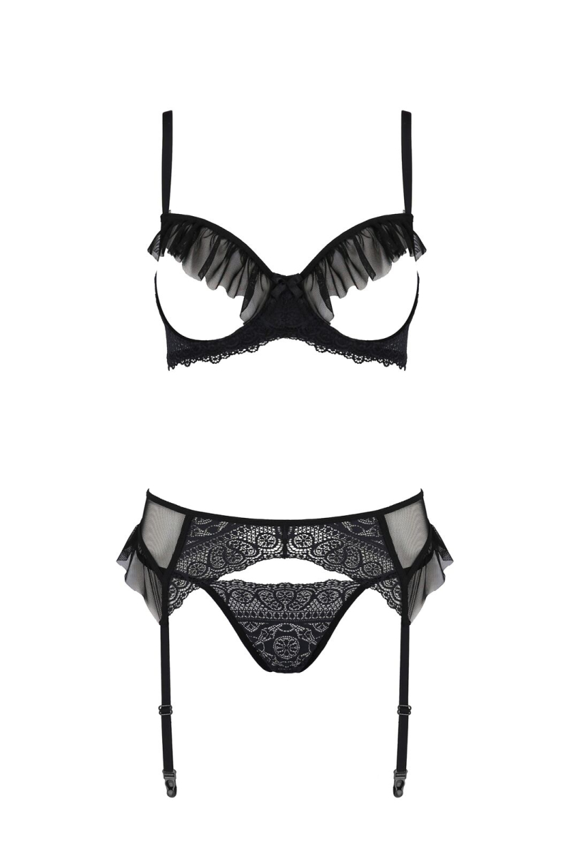 Комплект Passion KERRIA SET WITH OPEN BRA black L/XL - ECO Passion