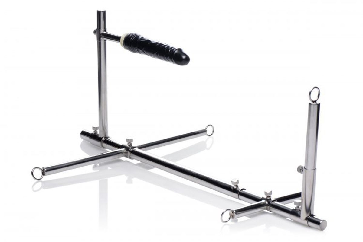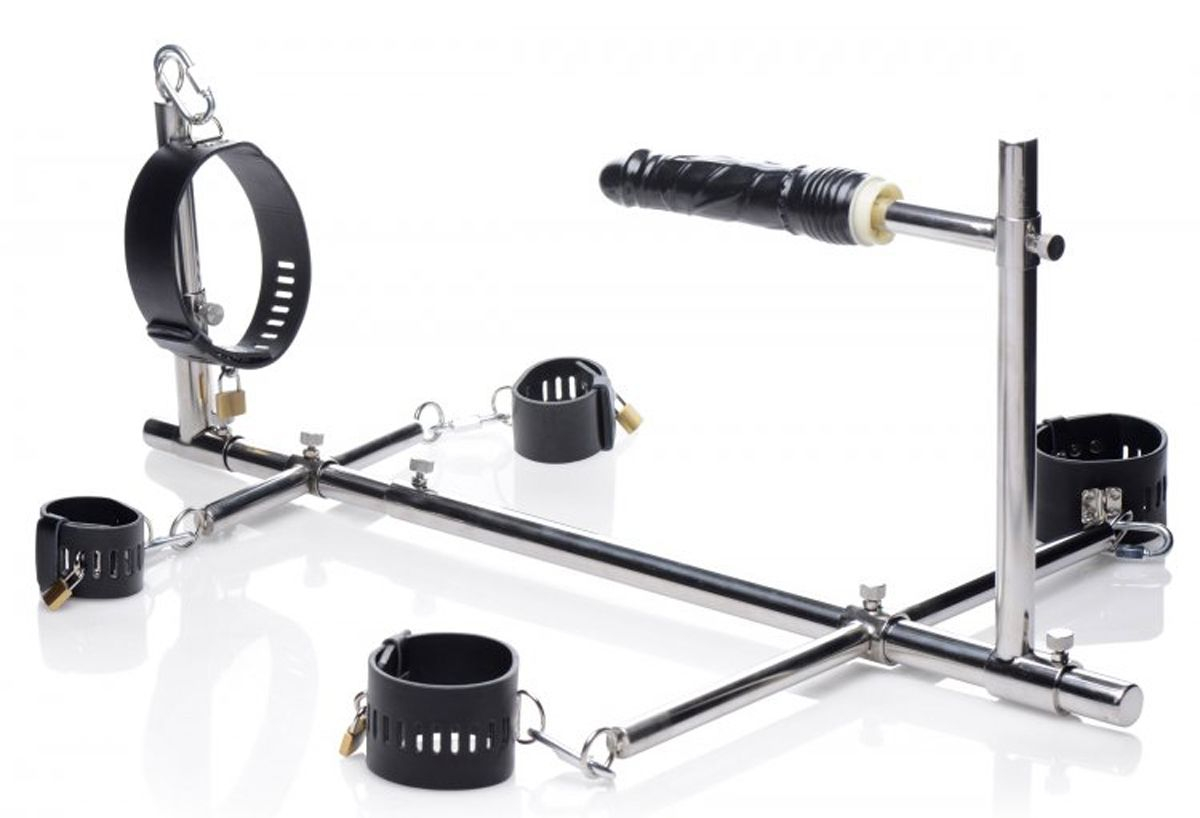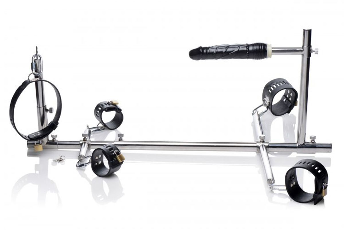 Металева конструкція створена для того, щоб ви відчули всю повноту влади над своєю рабинею або рабом, а вона/він - своє підпорядковане становище. Цей фіксуючий БДСМ-верстат підійде і для раба чоловічої статі, завдяки регулюванню довжині базової планки та можливості встановити фалоімітатор на висоті від 3,5 до 29 см. Надійні замки гарантують фіксацію, а потужний ділдо - додаткові глибокі відчуття. Підходить для анального або вагінального проникнення для неї та для анального для нього.