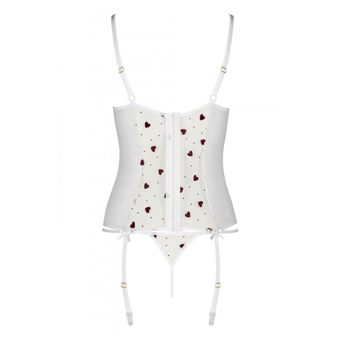 Корсет з підв'язками + стрінги LOVELIA CORSET white S/M - Passion з романтичним малюнком і спокусливими вирізами зведе з розуму вашого партнера! А завдяки комфортному крою корсет можна носити досить довго.