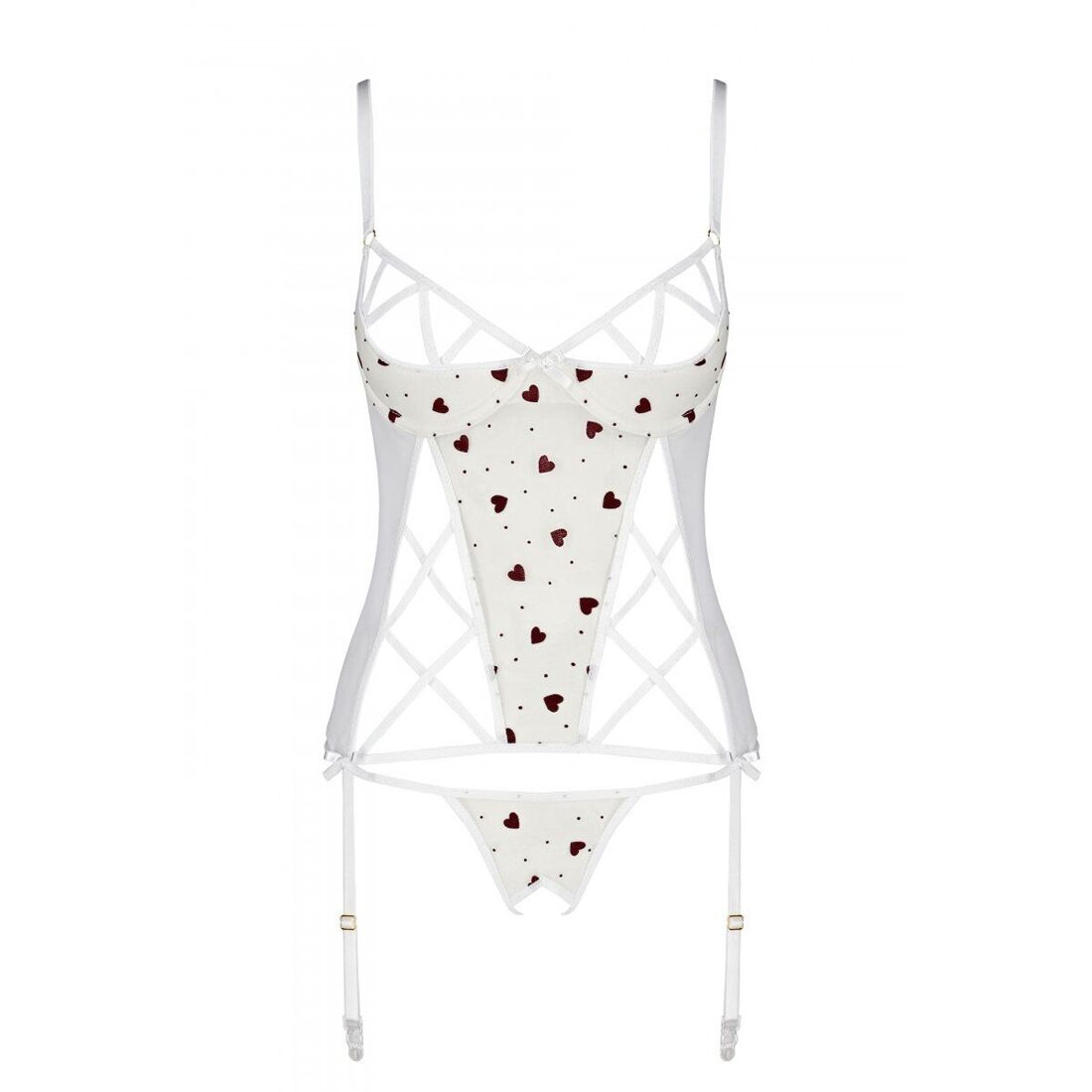 Корсет з підв'язками + стрінги LOVELIA CORSET white XXL/XXXL - Passion з романтичним малюнком і спокусливими вирізами зведе з розуму вашого партнера! А завдяки комфортному крою корсет можна носити досить довго.