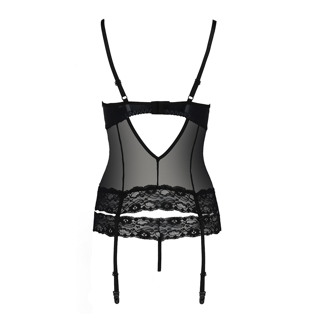 Пропонуємо купити сексуальний корсет PASSION NORTH CORSET чорний, виготовлений з фатину і лами з мереживними вставками. Елегантна білизна чорного кольору красиво підкреслює всі достоїнства жіночої фігури, вміло маскуючи недоліки. Відвертість білизни зашкалює. Відкритий бюстгальтер з кісточками підтримає вашу груди, роблячи їх ще більш апетитними і бажаними. Стрічки на животі так і ваблять розв'язати їх. Відчуйте себе у новому амплуа! Побачивши вас в такому вбранні, ваш партнер неодмінно захоче вас.