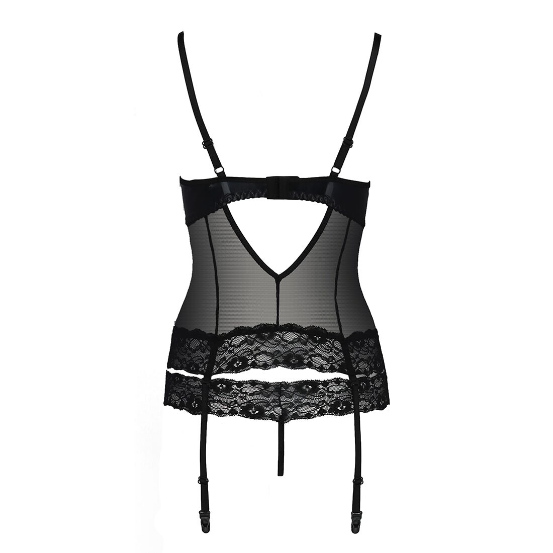 Пропонуємо купити сексуальний корсет PASSION NORTH CORSET чорний, виготовлений з фатину і лами з мереживними вставками. Елегантна білизна чорного кольору красиво підкреслює всі достоїнства жіночої фігури, вміло маскуючи недоліки. Відвертість білизни зашкалює. Відкритий бюстгальтер з кісточками підтримає вашу груди, роблячи їх ще більш апетитними і бажаними. Стрічки на животі так і ваблять розв'язати їх. Відчуйте себе у новому амплуа! Побачивши вас в такому вбранні, ваш партнер неодмінно захоче вас.