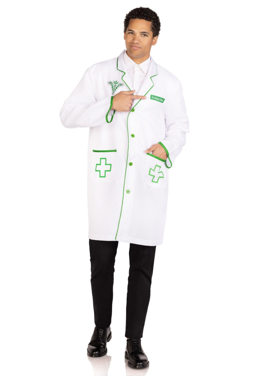 Білий халат із зеленим оздобленням та вишитими зеленими хрестами дає зрозуміти, що перед нами лікар. Але подивіться на емблему: окрім звичних змій охорони здоров’я, там є три листочки конопель. Отже, наш лікар — ніхто інший, як учасник відомого в усьому світі руху «420». Вдень він виступає за легалізацію заборонених інгредієнтів, а вночі готовий веселитися на вечірках із симпатичними медсестричками.