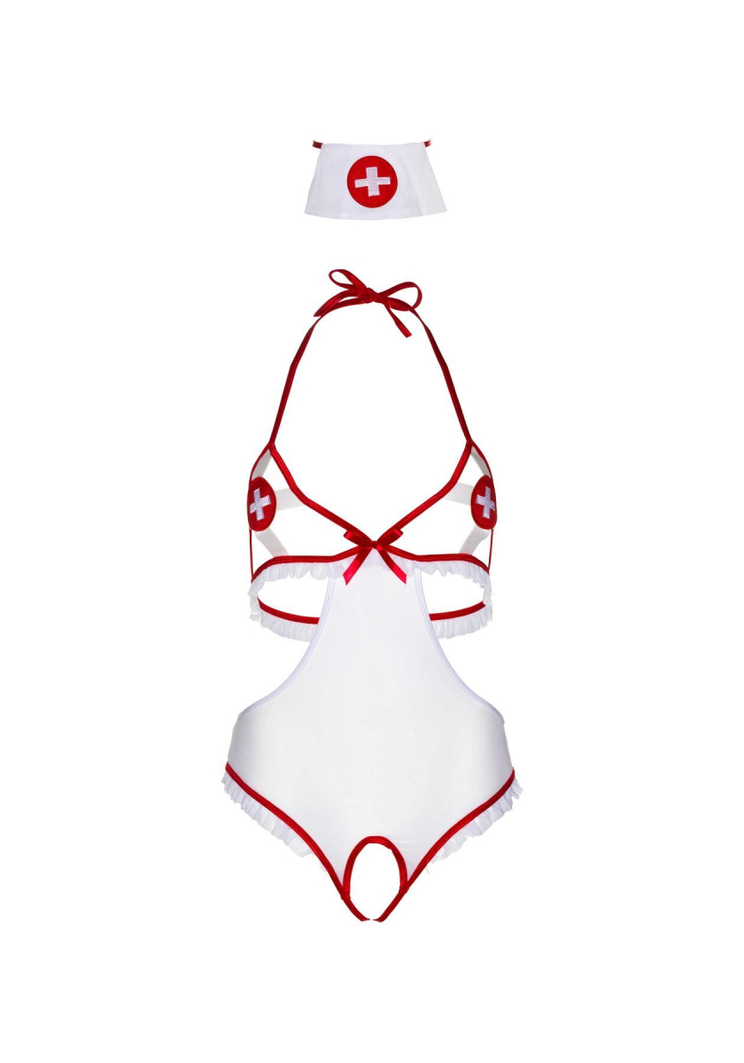 Цей костюм змусить похвилюватися будь-кого! Боді з чашечками, які лише прикривають соски стилізованими медичними хрестиками, відкриває груди для огляду та сміливих ??пестощів, а повністю відкрита зона бікіні дає можливість не знімати костюм під час близькості. Виріз халтер розкішно підіймає груди, а лямки на зав’язках дають змогу відрегулювати боді під ваші індивідуальні параметри. До комплекту костюма медсестри Leg Avenue Roleplay Naughty Nurse також входить стилізований медичний головний убір.