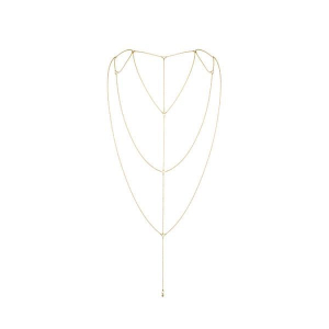 Відкрита спина - це завжди розкішно і спокусливо, проте можливо зробити декольте ще більш прекрасним, якщо купити прикрасу Bijoux Indescrets Magnifique Back and Cleavage Chain - Gold. Витончений ланцюжок з мініатюрних кульок підкреслить красу тіла.