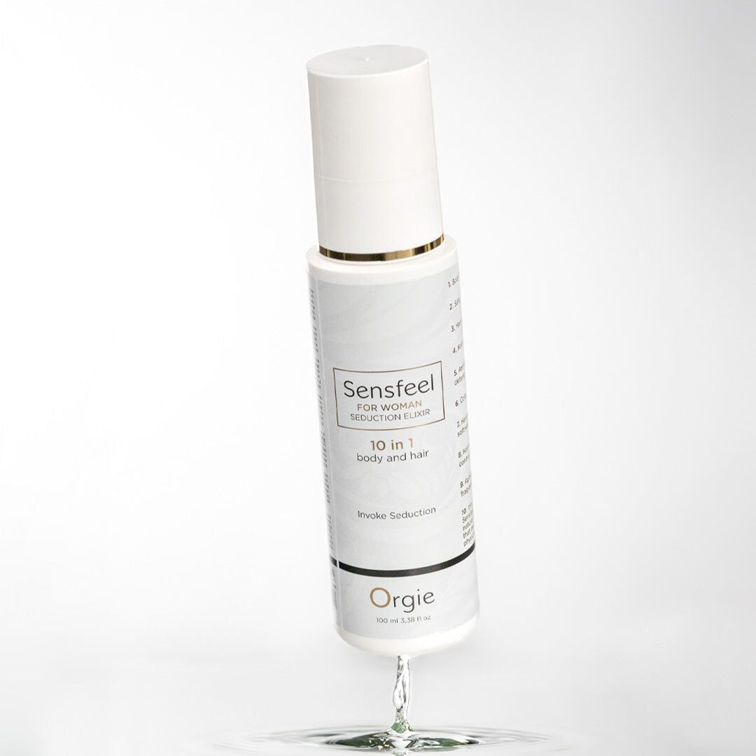 Лосьйон з феромонами для тіла та волосся Orgie – Sensfeel Seduction Elixir 10 in 1 for Woman — це унікальний засіб 10в1, який зробить шкіру та волосся зволоженими й привабливими, а також підкреслить жіночність і сексуальність!