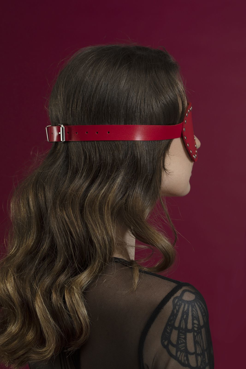Шикарна маска з заклепками стане вашим улюбленим аксесуаром для ігор з зав'язуванням очей! Анатомічна форма повторює форму особи, забезпечуючи щільне прилягання і не пропускаючи світло. Виготовлена ??з високоякісної шкіри рослинного дублення та доповнена стильною фурнітурою сріблястого кольору.