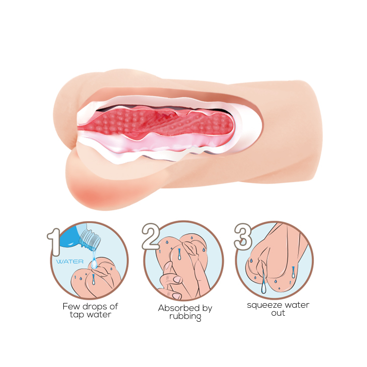 Компактний мастурбатор виконаний у вигляді реалістичної вагіни зі статевими губами та тугим релефним каналом. Особливість полягає в тому, що при додаванні декількох крапель води в тунель мастурбатора, матеріал приймає консистенцію ковзного, зволожуючого мастила. Має натуральний тілесний колір та дуже правдоподібні внутрішні складки, що приносять відчуття повноцінного сексуального контакту за рахунок щільного облягання стовбура пеніса. Його рельєфна зовнішня поверхня забезпечує дуже високий рівень ергономічності – під час мастурбації вона не вислизне з рук і не зіпсує відчуттів задоволення. Така секс-іграшка стане улюбленою забавою будь-якого чоловіка.