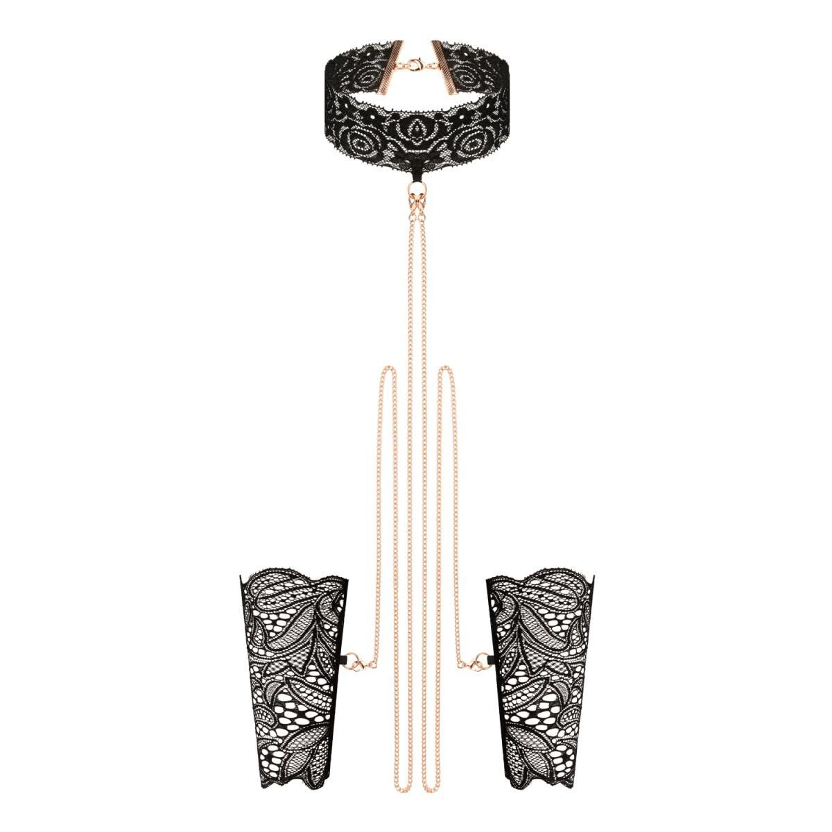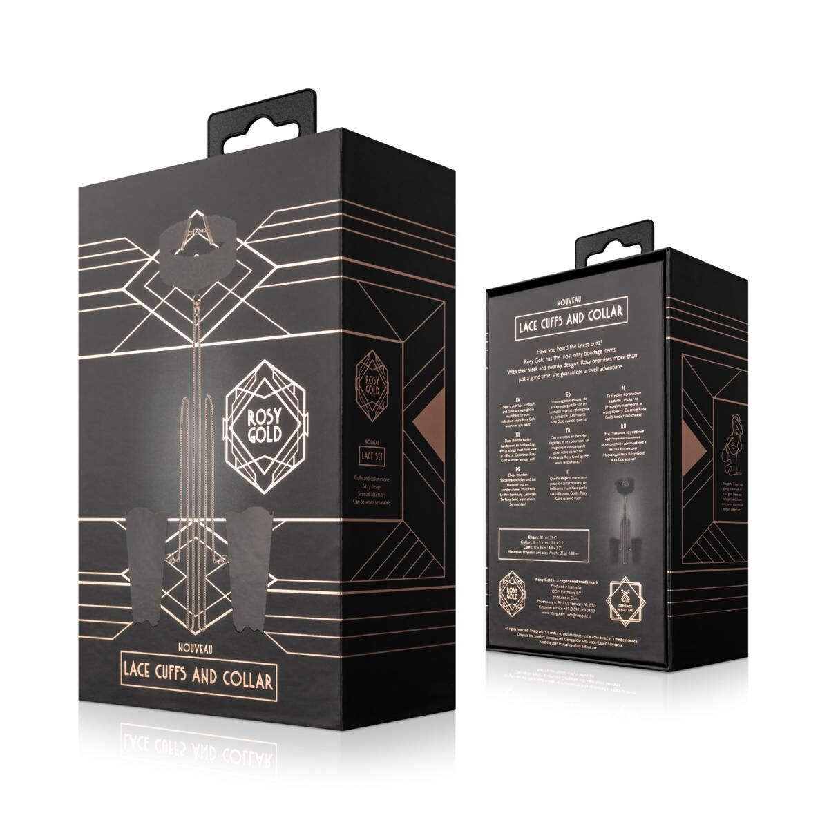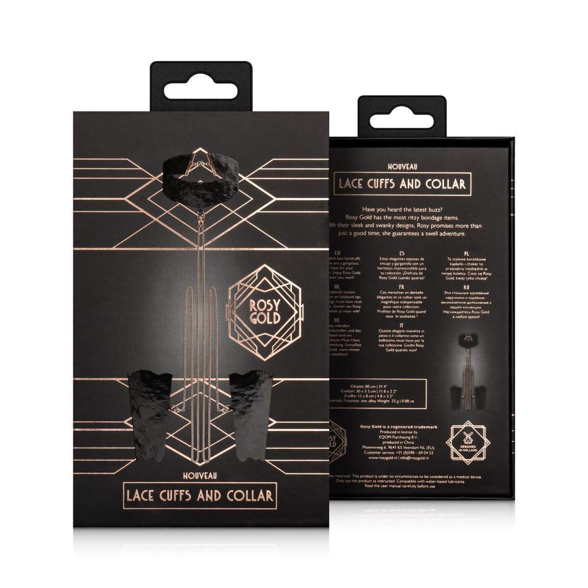 - Мереживні наручники та комір Rosy Gold - Lace Cuffs and Collar - Black