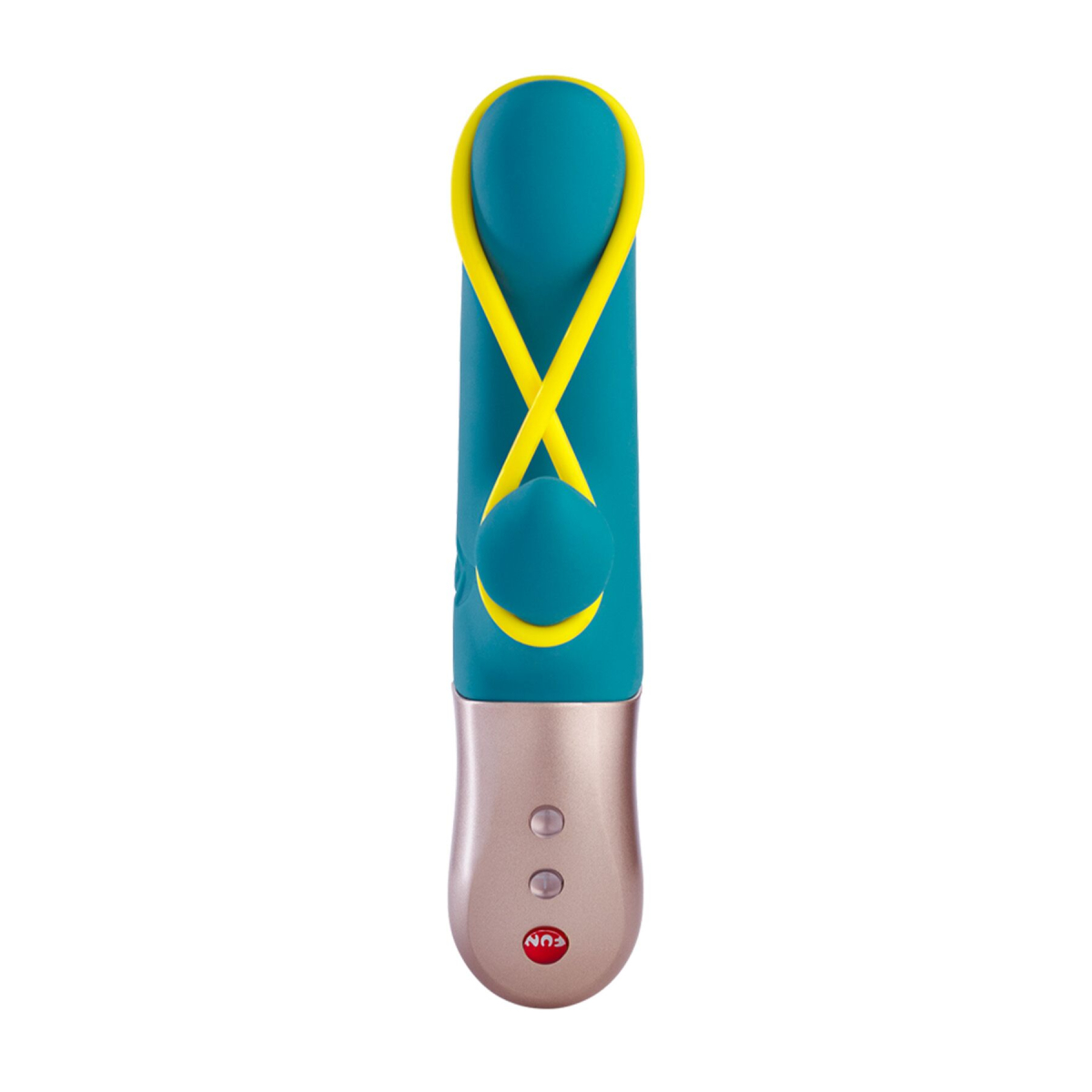 Мінівібратор-кролик зі стимулювальною стрічкою Fun Factory AMORINO petrol/neon yellow, стрічка знімна - фото