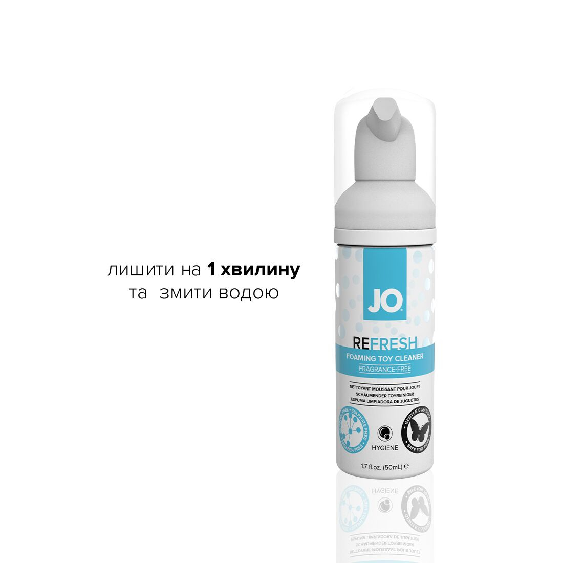 М’яка пінка для очищення іграшок JO REFRESH — це ніжна турбота за допомогою очищувального пінного засобу для секс-іграшок JO® REFRESH. М’яка формула характеризується швидкістю очищення і не залишає відкладень. Відсутність триклозану та парабенів робить засіб безпечним для матеріалів будь-яких іграшок, а також для рук під час використання. Достатньо нанести шар піни на іграшку й залишити на 5–10 секунд, а потім змити. У разі сильних забруднень необхідно втирати засіб більш ретельно.