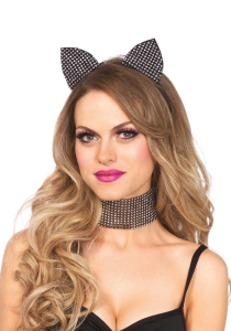 Створіть грайливий костюм кошеня або додайте кокетливості у святковий образ за допомогою набору кішечки зі стразами Leg Avenue Cat ear headband & choker set. До цього гламурного комплекту костюма кішки входить обідок із котячими вушками та особливо широкий чокер. Усі деталі прикрашені блискучими стразами.