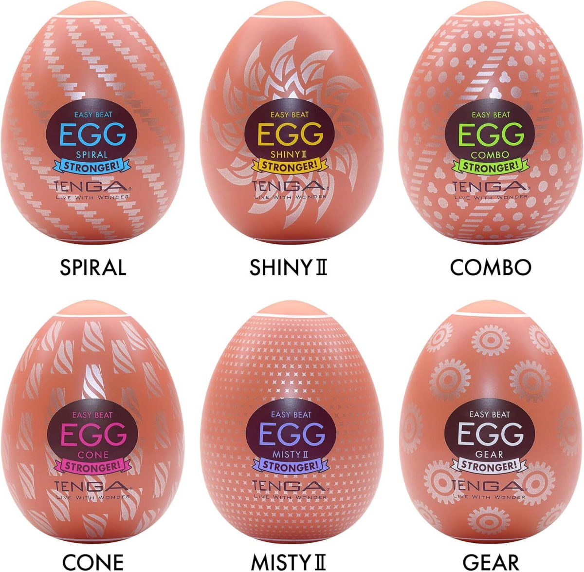На вигляд — звичайні яйця, які таять у собі багато приємних сюрпризів! Пропонуємо купити набір мастурбаторів-яєць Tenga Egg Hard Boilded II — абсолютно новий тип кишенькових мастурбаторів, які виготовлені з більш щільного TPE, ніж стандартні. Особливо опукла внутрішня текстура у вигляді реберець, спіралей, променів, шестерень, конусів та пірамідок дуже приємно відчувається на пенісі. Неймовірне задоволення, яке ні з чим не порівняти! У наборі є 6 яєць, кожне зі своєю текстурою, так що ви зможете поекспериментувати з відчуттями на повну. Підходять для будь-якого розміру пеніса. У комплекті з кожним яйцем — мініатюра лубриканту на водній основі.
