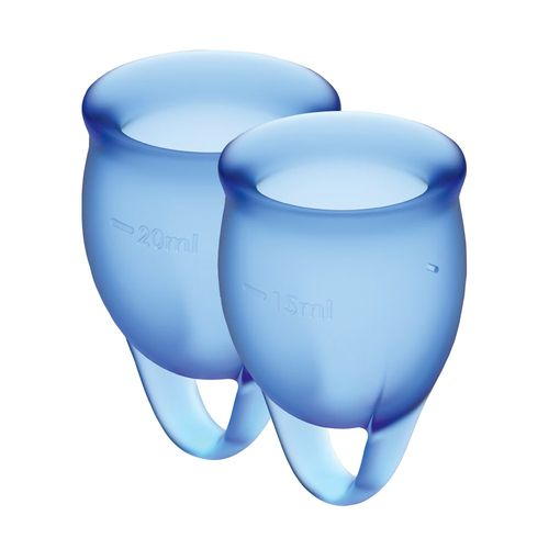 Пропонуємо купити набір менструальних чаш Satisfyer Feel confident Menstrual Cup (dark blue) — екологічну альтернативу тампоном, яка не поступається їм в комфортності носіння і вигідно відрізняється можливістю багаторазового використання. Виготовлені з медичного силікону, вони комфортні і безпечні. Дану модель особливо оцінять користувачі-початківці чаш, т. до. вона забезпечена надійним силіконовим кільцем для простого витягання. У наборі — дві чаші, на 15 мл і 20 мл і мішечок для зберігання. Набір упакований в дуже красиву подарункову коробку.