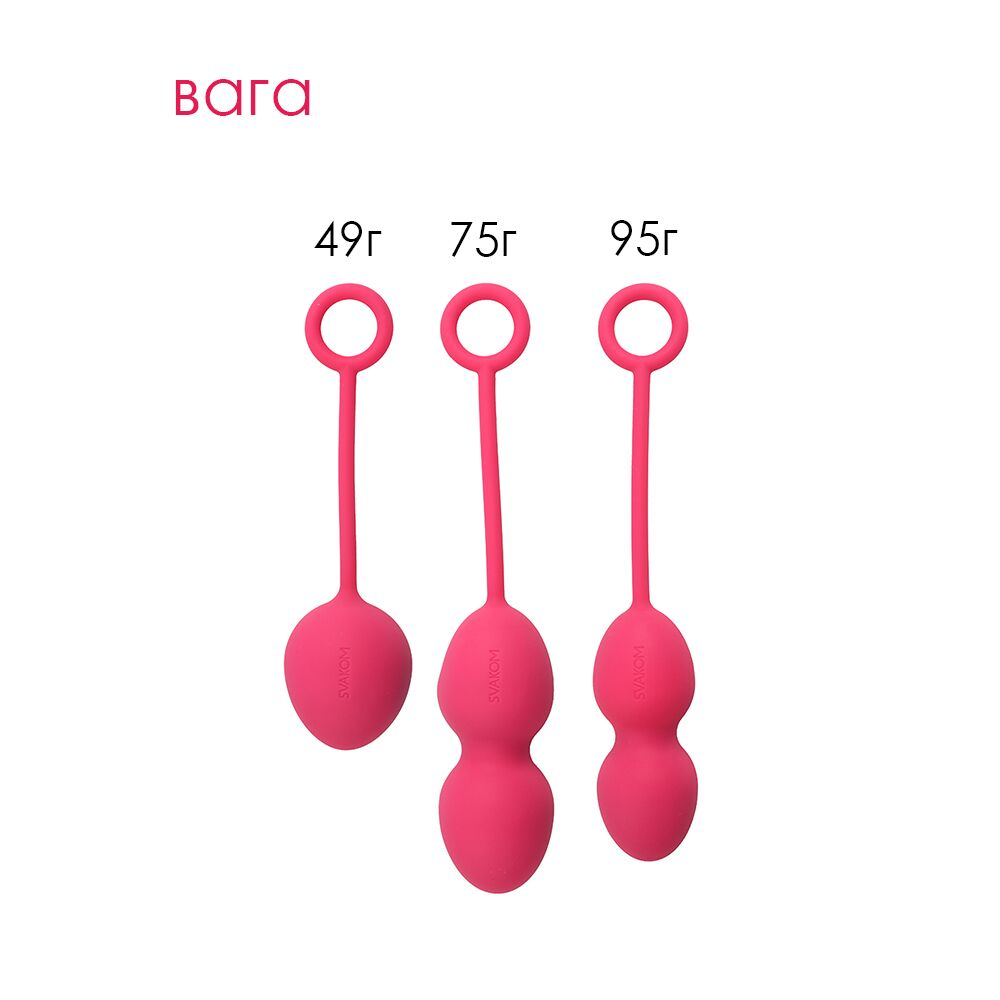 Усі вагінальні кульки Svakom покриті безпечним силіконом та оснащені петелькою для вилучення. Тренуючись із набором вагінальних кульок зі зміщеним центром ваги Svakom Nova, вже за кілька місяців ви помітите реальні зміни!