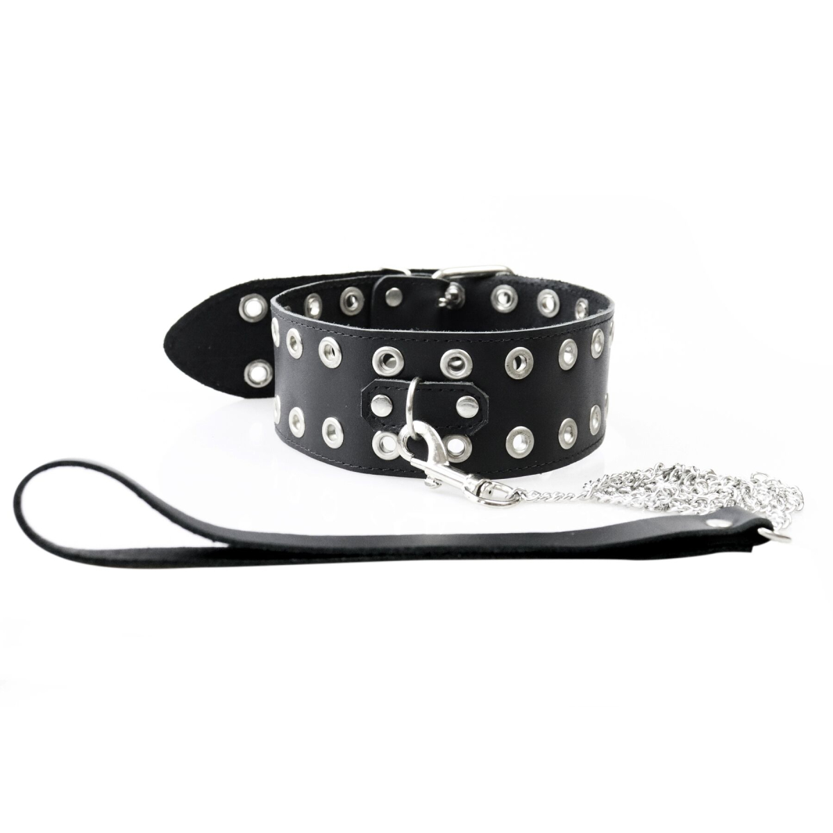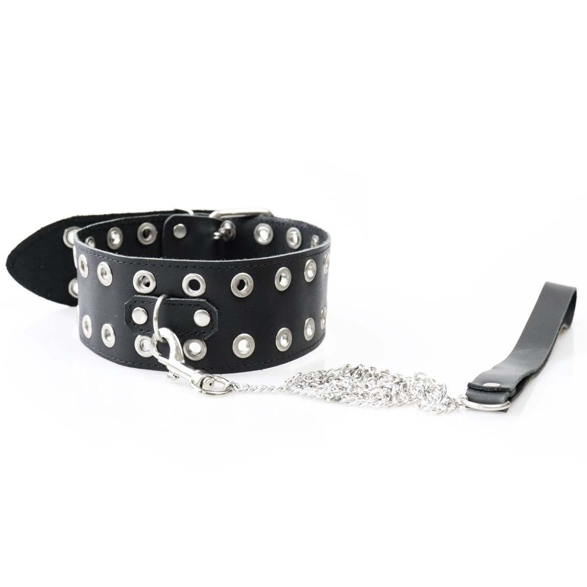 Нашийник Art of Sex -Tessa із натуральної шкіри в парі з металевим повідцем – обов’язкові аксесуари для тих, хто практикує рольові ігри з домінацією та підкоренням. Комфортний нашийник легко регулюється по об’єму шиї, а повідець можна знімати за бажанням, або якщо цього потребує сценарій. Нашийник декоровано металевими заклепками для більш аутентичного та провокативного вигляду.
