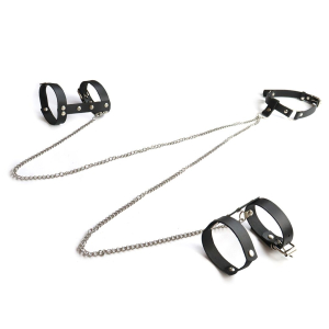 Нашийник з натуральної шкіри з чудовим поєднанням у вигляді прикрас для рук. З’єднані поміж собою тонкими металевими ланцюжками, вони будуть ідеально доповнювати ваші ігри з підкоренням і домінацією. Прикраси для рук – це імітація наручників, яка в цьому випадку більш легка, але обіграна на східний мотив, і тому викликає асоціацію з рабинями-танцівницями, заточеними в гаремі. Як би то не було, завдяки цьому девайсу, ваші БДСМ практики стануть більш різноманітними і цікавими. Ще більше варіантів для отримання насолоди.