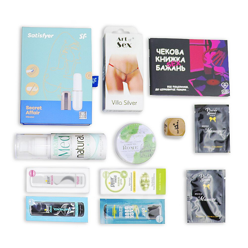 Всі елементи подарункового набору "Маленька таємниця", грамотно підібрані фахівцями, які дійсно розуміються на задоволенні. Книга секс бажань і кубик з позами для сексу допоможуть вам здійснити найсміливіші фантазії. Розслабляючий масаж за допомогою ароматної масажної свічки підвищить рівень збудження та посилить чуттєвість. Маленький, але потужний вібратор ідеально підійде для сольних або парних ігор, а також порадує свою господиню насиченими оргазмами у ванній або душі. Незвичайні трусики з ланцюжком стануть пікантним доповненням вечірнього вбрання для жінок. Змазки в наборі подбають про те, щоб ваша близькість була максимально комфортною. Подарунковий набір "Маленька таємниця":