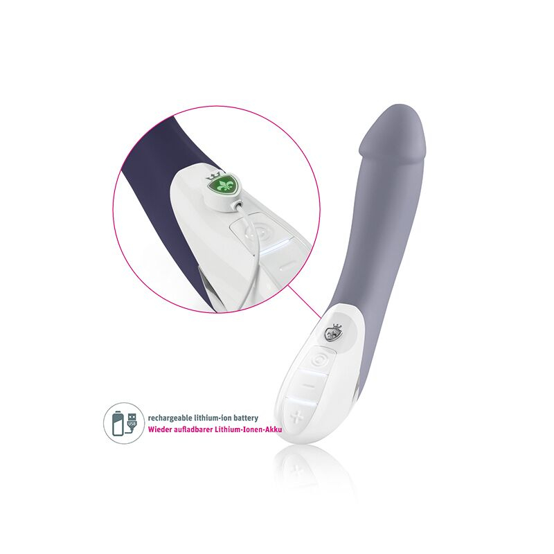 Вібратор перезаряджається, працює від літій-іонної батареї. В комплекті - магнітний USB-кабель для підзарядки (увага! Заряджайте тільки від USB-порту комп'ютера або ноутбука, не від розетки!).