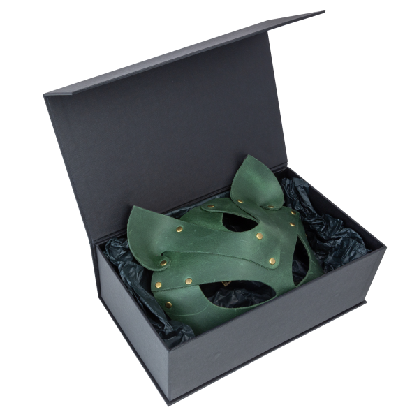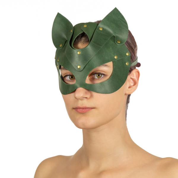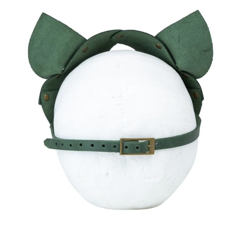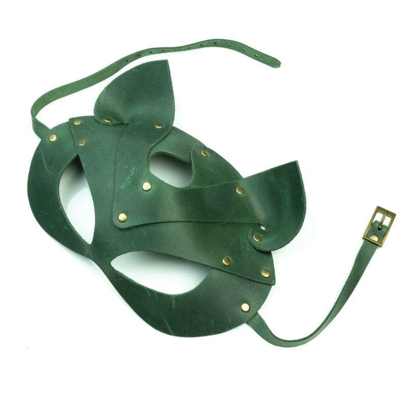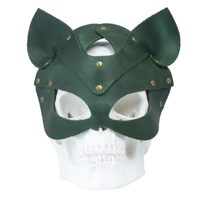 Зелена маска кішки LOVECRAFT з натуральної шкіри: