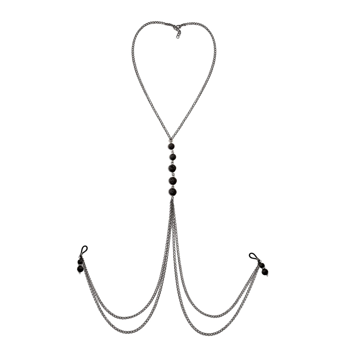Прикраса для грудей Art of Sex - Nipple clamps Lava, створена, щоб підкреслити красу та витонченість жіночого тіла. Дизайн аксесуару поєднує лавові намистини та тонкі ланцюжки, які ніби обрамляють сексуальні груди. Натуральна лава має приємну шорсткувату поверхню, що викликає додаткові приємні відчуття під час контакту прикраси з тілом.
