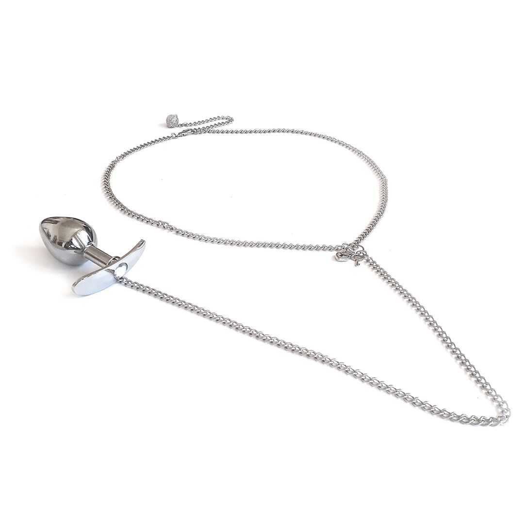 Металева анальна пробка для довготривалого носіння з поясом однозначно виглядає зухвало та сексуально. Втулка надійно з'єднана з поясом, завдяки чому ваші еротичні ігри будуть не тільки дивовижно розпусними, але і абсолютно безпечними. Пояс з анальною пробкою дозволяє реалізувати масу еротичних фантазій та рольових сценаріїв. Металева пробка поєднується з будь-якими лубрикантами на та легко очищається за допомогою антибактеріального мила та води або спеціальних дезінфекторів для секс-іграшок.