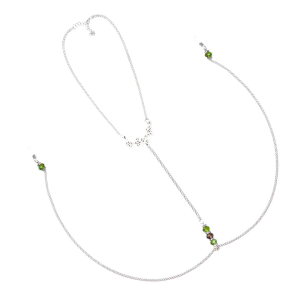 Рекомендуємо купити прикрасу з ланцюжками та намистинами для сосків Art of Sex – Silvestra — принадну деталь до вашого чудового образу. Витончений дизайн прикраси акцентує увагу на ваших грудях та тілі. Прикраса одягається на шию і фіксується на сосках м’якими силіконовими кільцями. Довгі ланцюжки прикрашають намистини зеленого та фіолетового кольорів. У зоні декольте ланцюжки з’єднуються виконаною у флористичних мотивах прикрасою.